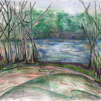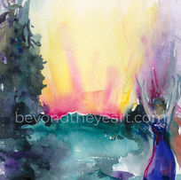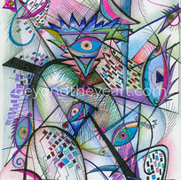 “Beyond the Eye Art” represents what my art is about: expressing what I feel intuitively beyond what I can see. In addition to curating this collection of favorite drawings and paintings dating back to 1978, I have been focused on creating new work, revealing the progression over time. The common threads are my love for vivid, semi-translucent color and the intersection of organic, curved arches, and geometric angles.